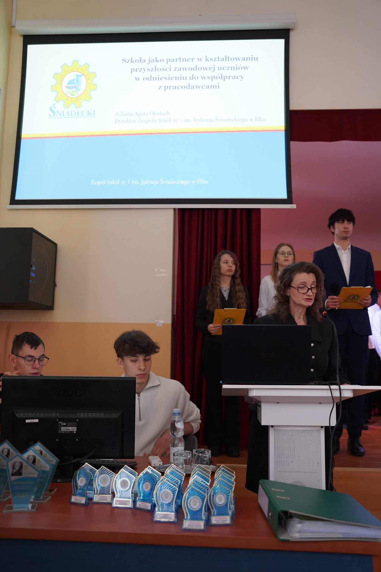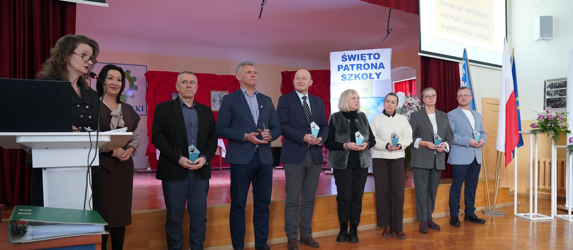 Pracodawcy, przedsiębiorcy i partnerzy szkoły otrzymali pamiątkowe statuetki – jako wyraz wdzięczności za współpracę i wsparcie. Uhonorowano również uczniów, którzy w minionym roku szkolnym osiągnęli sukcesy w różnych dziedzinach. Na zakończenie gali wyróżnieni uczniowie zaprezentowali swoje talenty artystyczne.