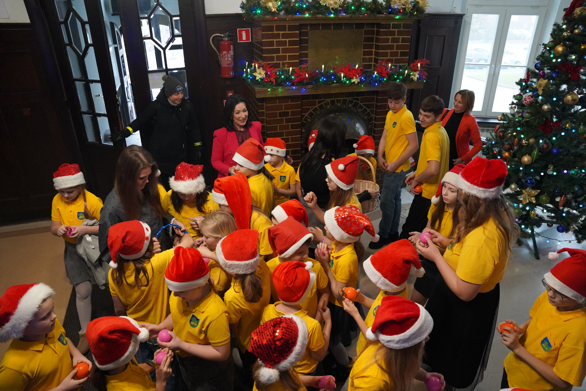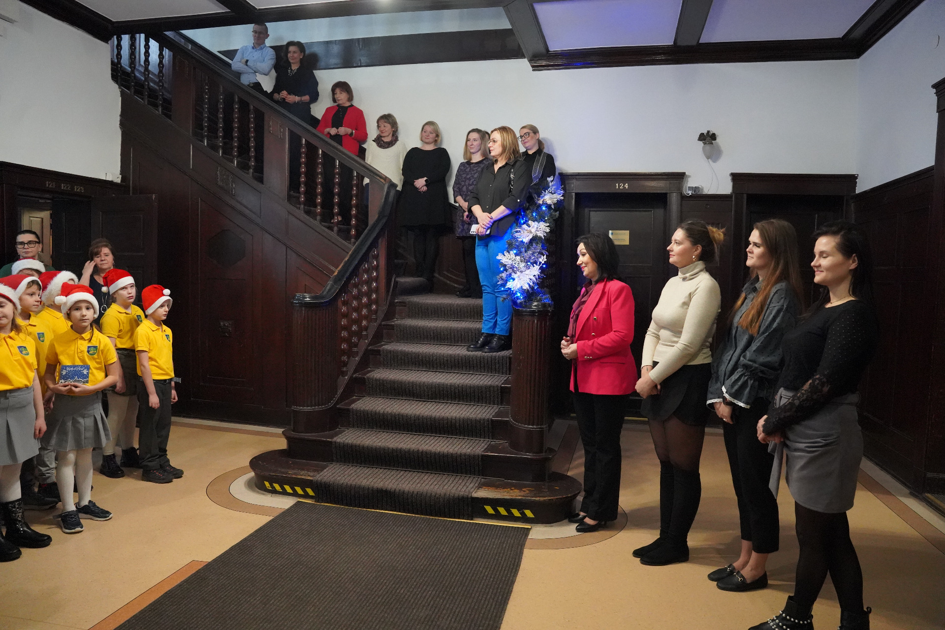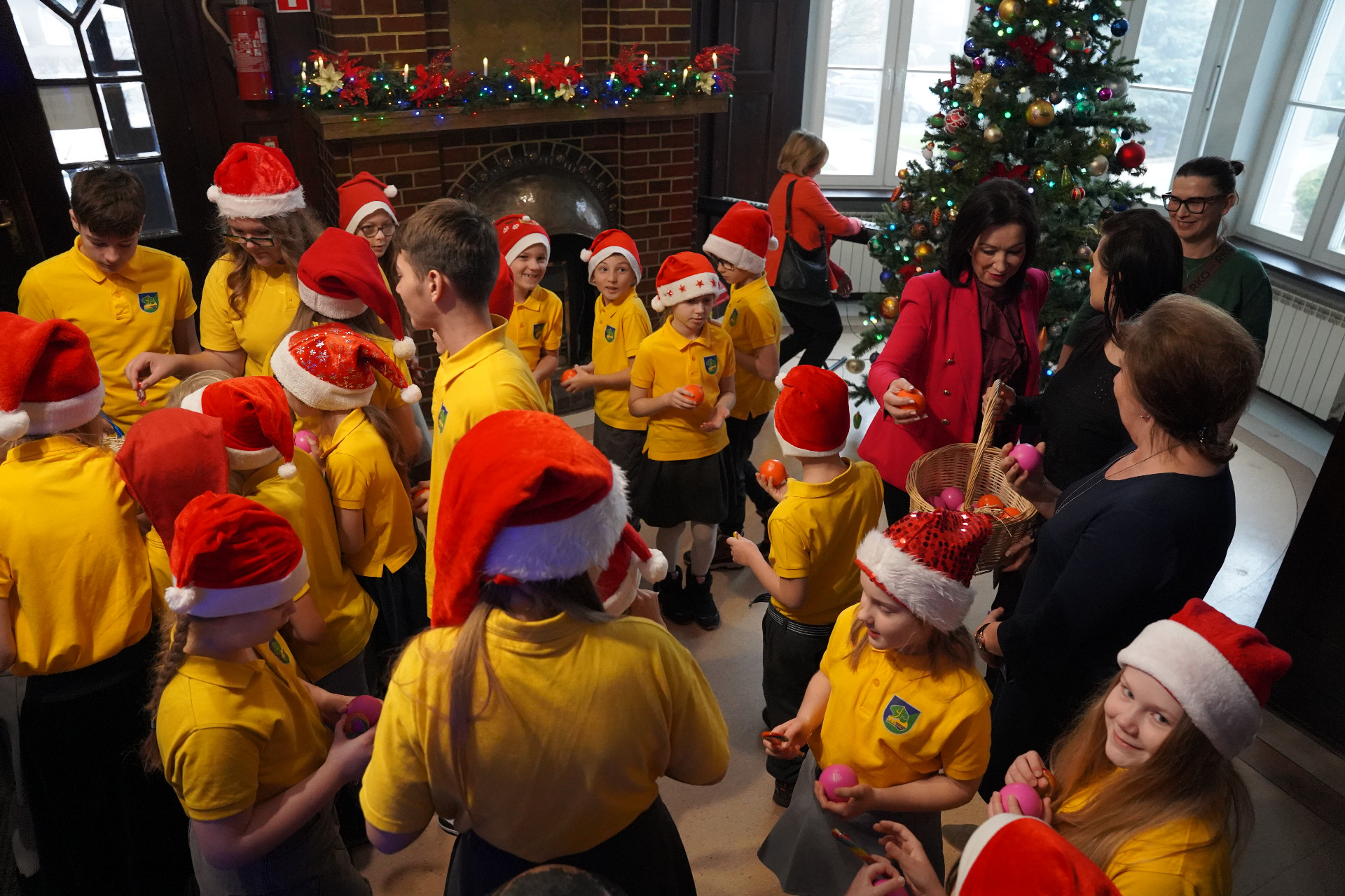 Podczas wizyty uczniowie zaśpiewali kilka kolęd i pastorałek. Zgromadzeni przy choince pracownicy, wprowadzeni w świąteczny nastrój, śpiewali razem z dziećmi. Po koncercie przedstawiciele szkoły złożyli nam życzenia świąteczne i noworoczne, a władze powiatu rozdały dzieciom słodycze i gadżety promocyjne.